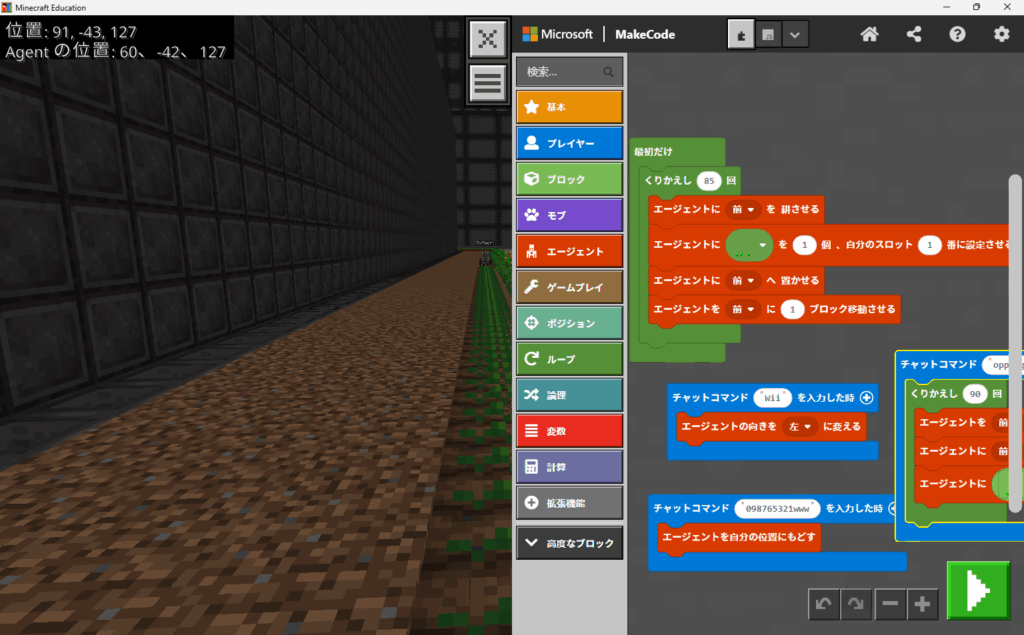 マインクラフト教育版で使える、ビジュアルプログラミング環境。ブロックを組み合わせるだけで、本格的なプログラムが作れます。