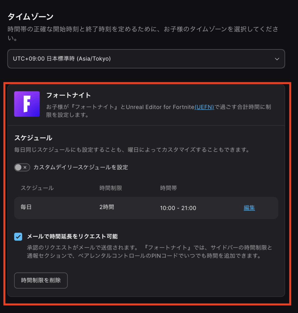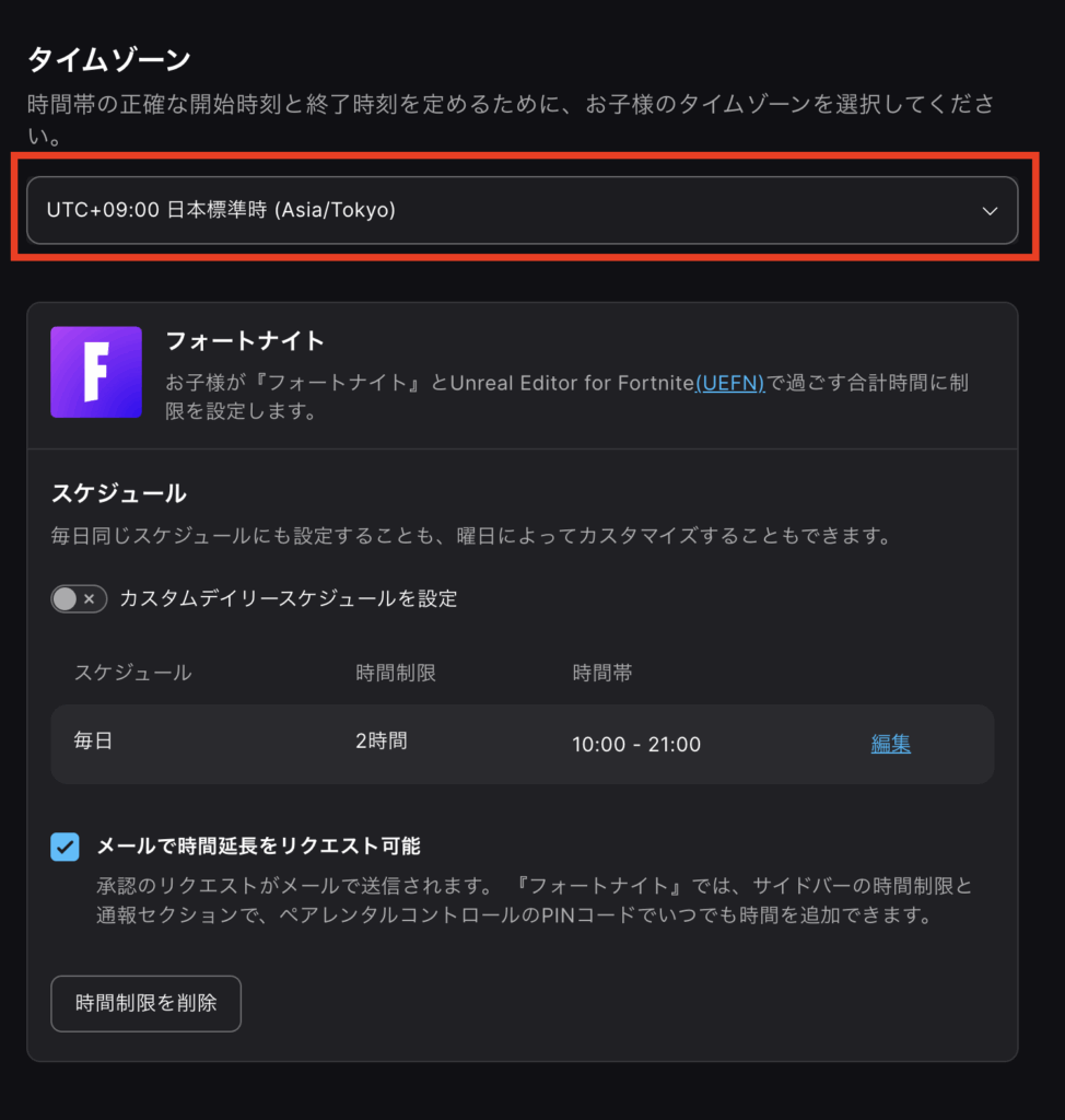 今回はEpic GamesのFortniteに関する時間設定をします。