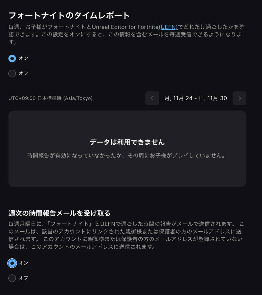 設定しておくと、「どれくらい遊んだか」をメールでもレポートを受け取ることができるので便利です。